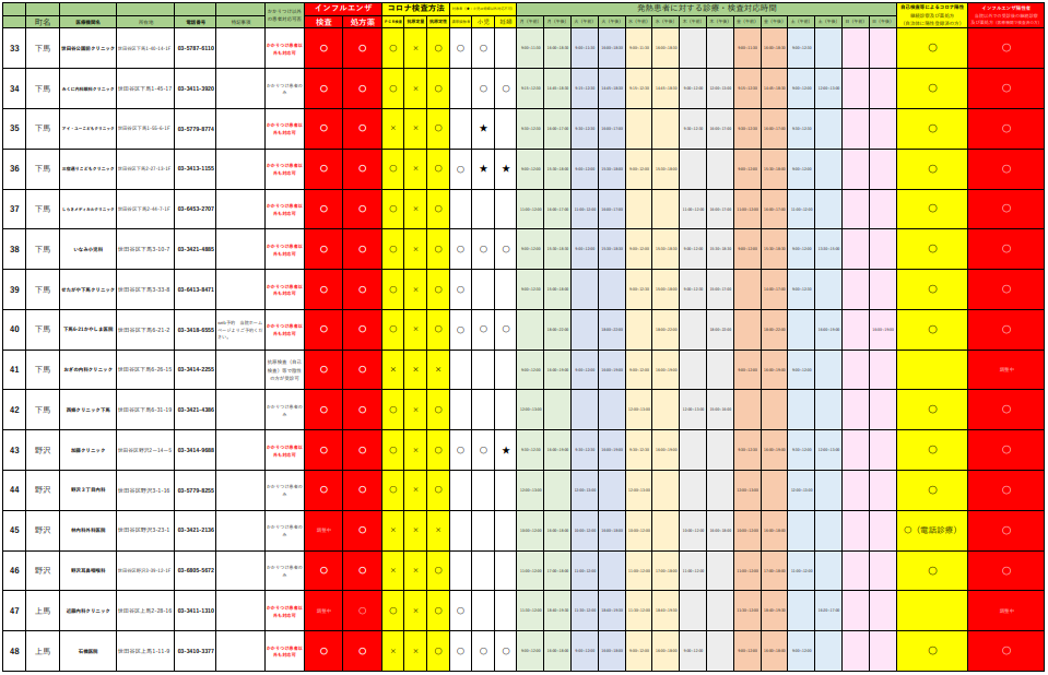 世田谷区医師会/新型コロナ・インフルエンザ医療ネットワーク検査・診療リスト(Excel:73KB)